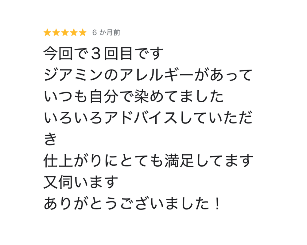 全コースに頭皮と髪の保護保湿剤を使用し、施術後には残留アルカリとジアミンを除去し、髪へのダメージを最小限に抑えた施術を叶えます◎